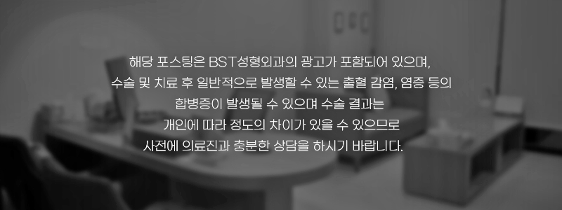 단순한 피부 봉합이 아닌 근막층, 피하조직층, 진피층 등 각 피부층을 분리해서 봉합해 피부 표면에 실밥이 남지 않는 BST만의 매직봉합법으로 수술합니다.