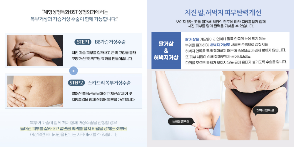 BST성형외과 처진살 제거, 체형 거상수술의 특징은?