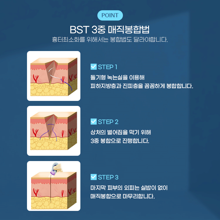 1. BST만의 특수한 봉합법 매직봉합술로 흉터 최소화!
