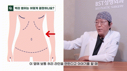 허리 라인을 만들 때에도 박리 범위와 지방흡입 양에 따라서 피부가 잘 당겨진다고 하면 굳이 박리를 하지 않아도 되고 지방흡입만 해서는 피부가 당겨지는 정도가 너무 약하다면 박리를 바깥쪽으로 연장을 해야 합니다.