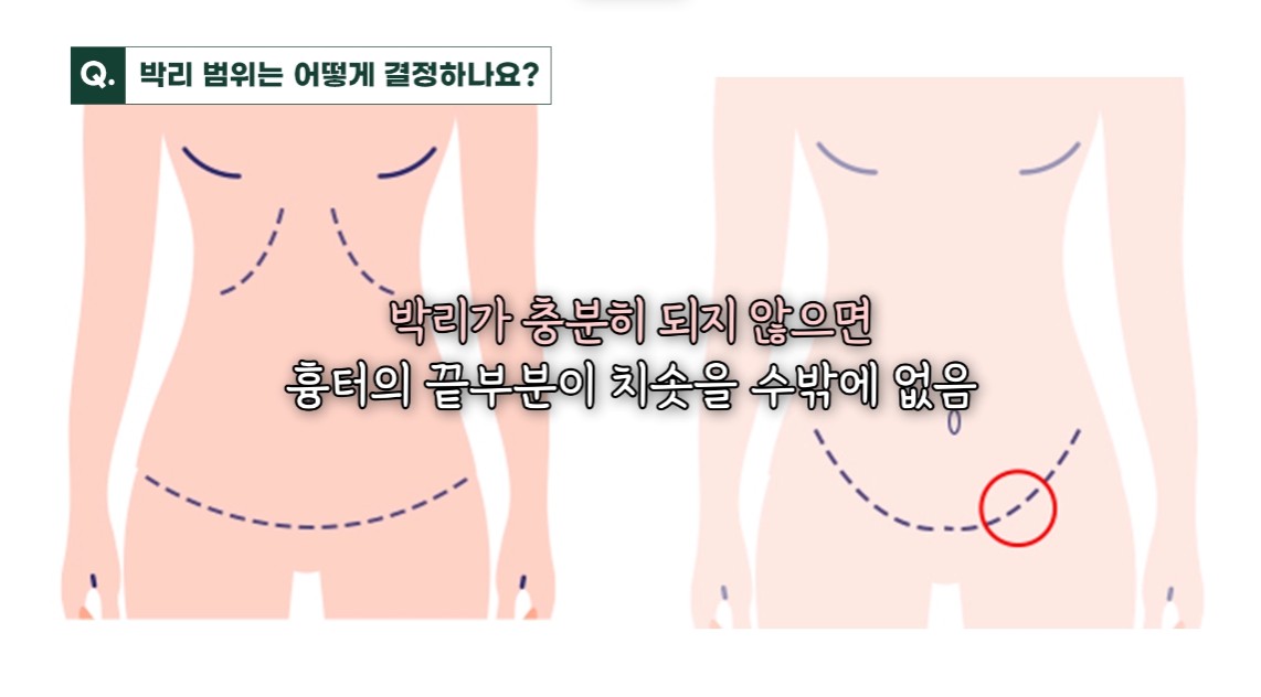 실제로 수술 도중에 피부 밑을 얼마나 박리하는가에 대해서는 의료진마다 여러가지 의견이 있습니다.