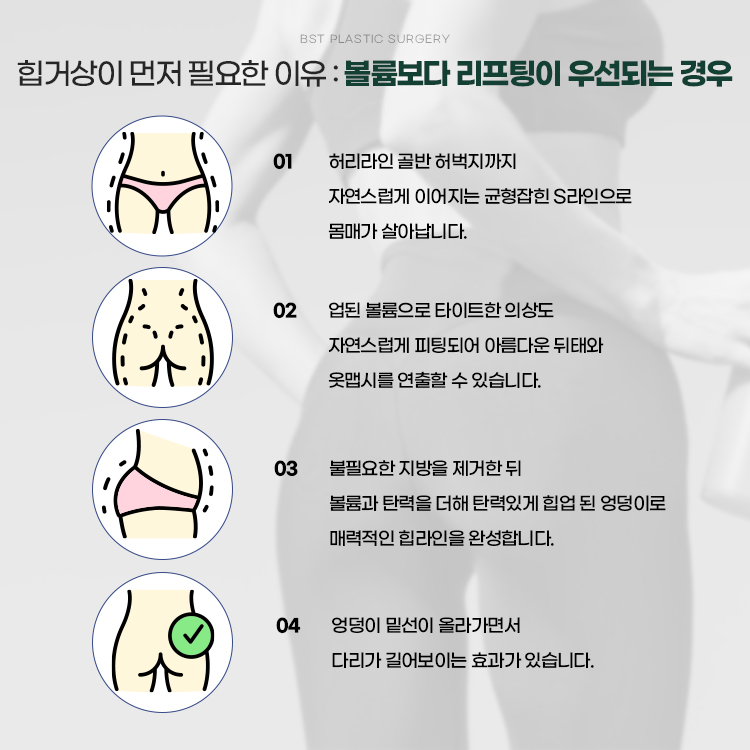 엉덩이성형, 리프팅이 먼저일까요? 볼륨이 먼저일까요?