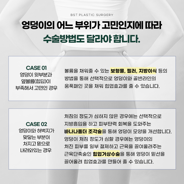엉덩이성형이라는 키워드는 대개 아래와 같은 니즈에서 출발합니다.