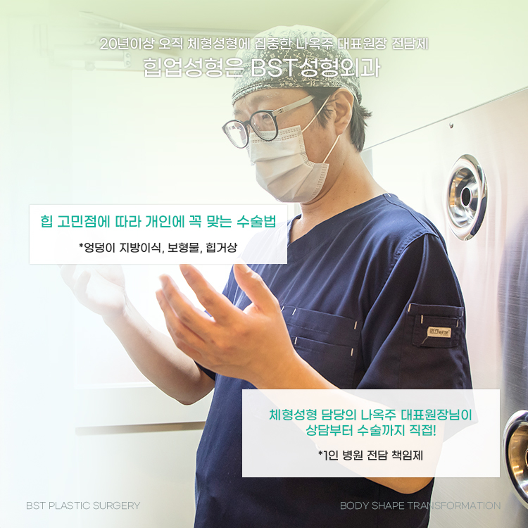 엉덩이 확대 수술과 거상 수술은 각각의 장단점이 있으며, 처짐 정도와 볼륨 필요성에 따라 적합한 수술 방법이 달라질 수 있습니다. 비에스티성형외과는 오직 체형성형에 집중한 나옥주 대표원장이 상담부터 수술, 사후관리까지 1:1 책임전담제로 운영되고 있습니다.