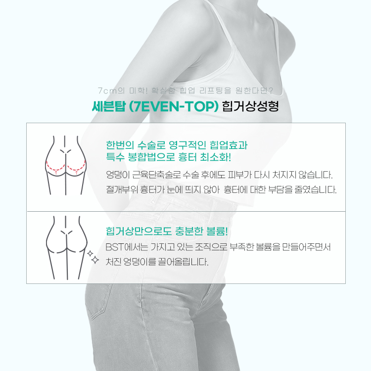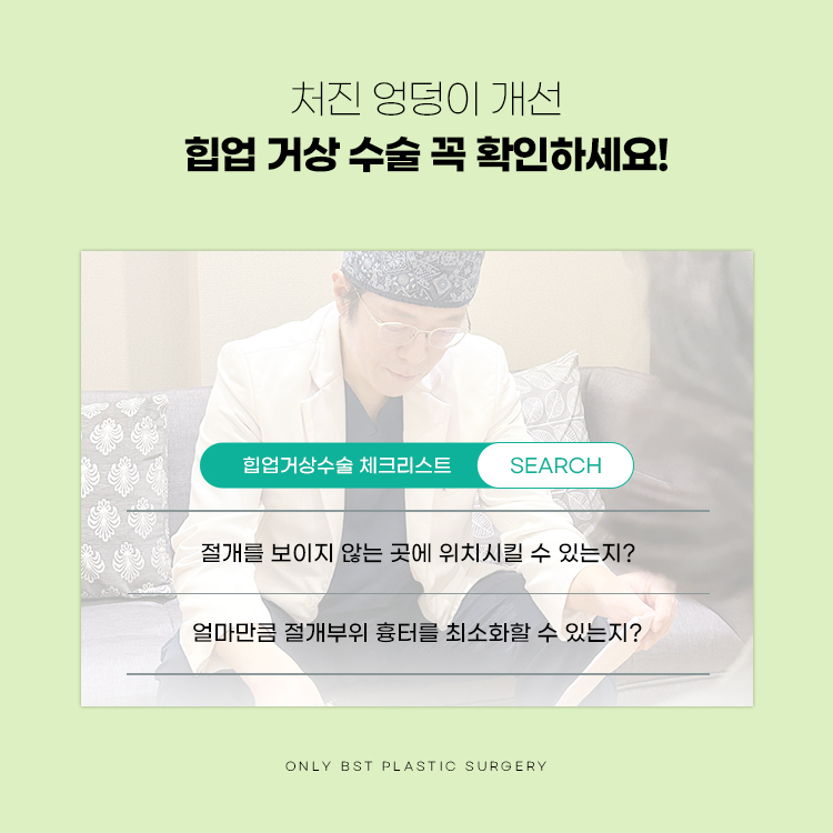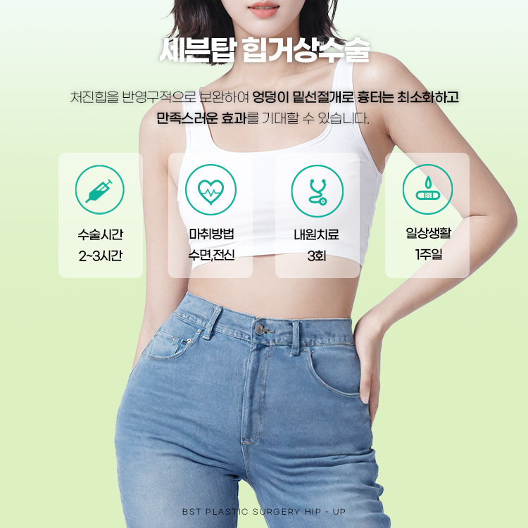 처지고 납작한 엉덩이로 인해 힙업이 고민된다면 비에스티성형외과와 상의하세요.