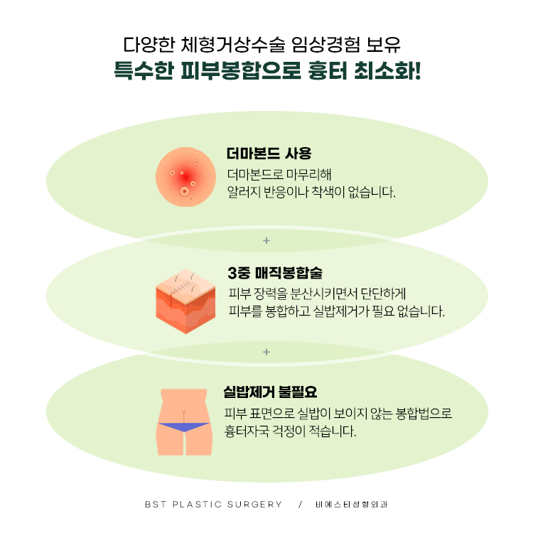 BST성형외과는 체형거상수술에 특화된 병원으로, 복부·힙·가슴·팔·허벅지 거상 등 오랜 노하우로 맞춤 진료를 제공합니다.