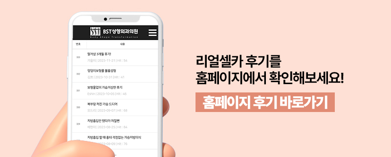 하지만 BST 성형외과에서는 엉덩이 밑선 절개를 통해서 엉덩이 주름처럼 감춰지도록 흉터를 배치하고 처음에는 일시적으로 흉터가 빨갛게 보일 수 있지만 시간이 지나면서 점점 옅어지고 피부색과 비슷하게 변해 크게 눈에 띄지 않게 됩니다.