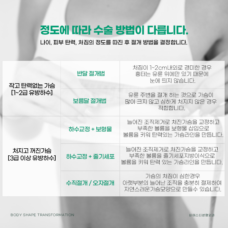 처짐 정도에 따라 수술법이 다릅니다