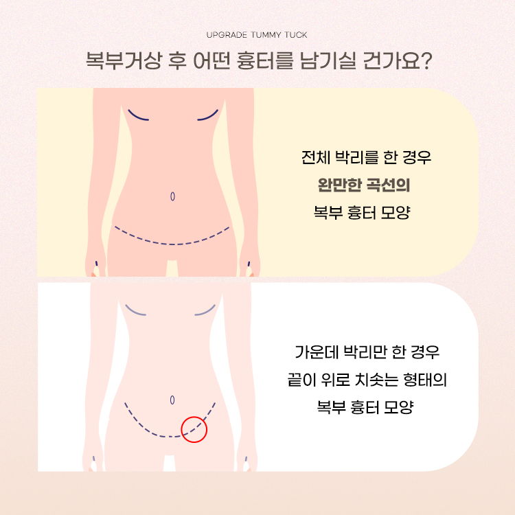 출산후 복부거상수술을 통해 배크기를 줄이고 싶다면 흉터 모양을 꼭 확인하세요!