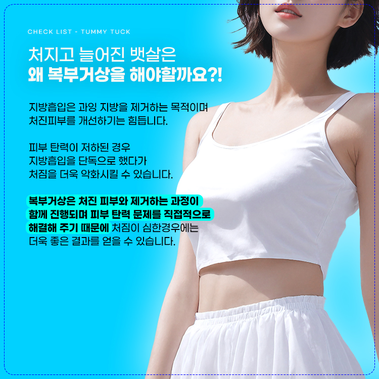 이처럼 복부 지방과 늘어진 피부가 결합되면 자연적인 방법으로 팽팽하고 탄력 있는 복부를 되찾기 어려워지며, 이로 인해 많은 여성들이 피부와 지방 문제를 모두 해결하기 위한 수술적 방법을 찾게 됩니다.