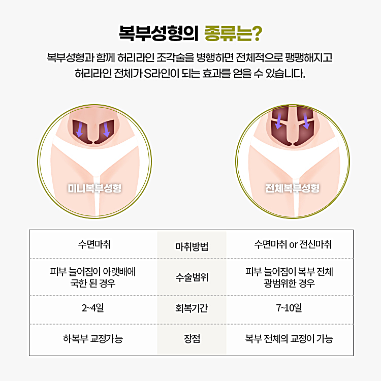 남은 피부 제거 및 탄력 회복: 늘어진 피부를 제거함으로써 복부를 탄탄하게 만들고, 수술 후 더욱 자연스러운 결과를 제공합니다.