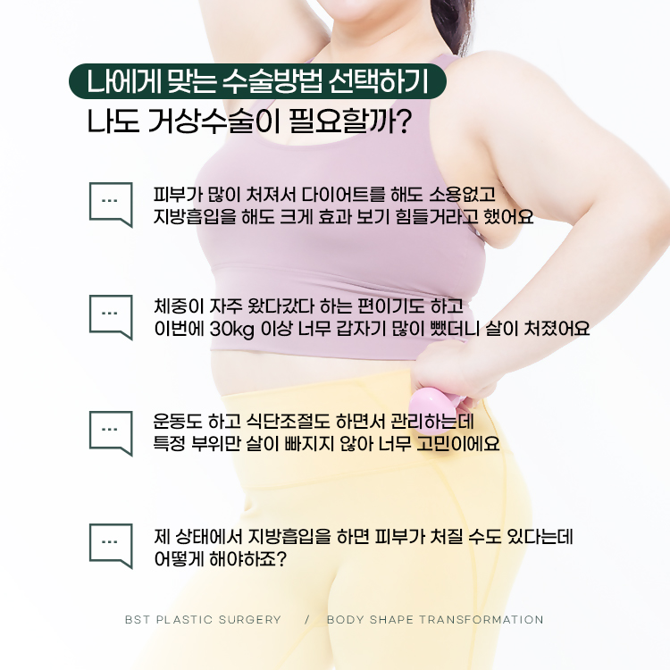 팔뚝살 지방흡입 수술은 효과적이고 빠른 결과를 주는 방법이지만, 피부 처짐이 심한 경우에는 팔거상 수술이 더 근본적인 해결책이 될 수 있습니다.