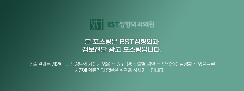 BST만의 3중 매직봉합술로 절개한 피부를 3중으로 나누어 봉합하되 피부 장력을 분산시키는 봉합방식을 사용해서 절개 부위 상처가 벌어지지 않도록 합니다.