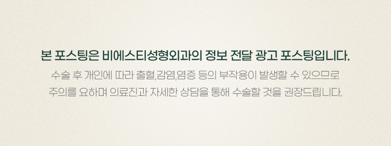 여기에 피부층은 3중으로 나누어 단단히 봉합하되 장력을 분산시키는 BST만의 3중 매직봉합술을 이용해 봉합하기 때문에 표면으로 드러나는 실밥도 없어 얇고 긴 선으로만 절개선 흉터가 남고 시간이 지나면서 차츰 옅어져 흉터에 대한 부담을 줄여준다는 점도 특징이라 할 수 있습니다.
