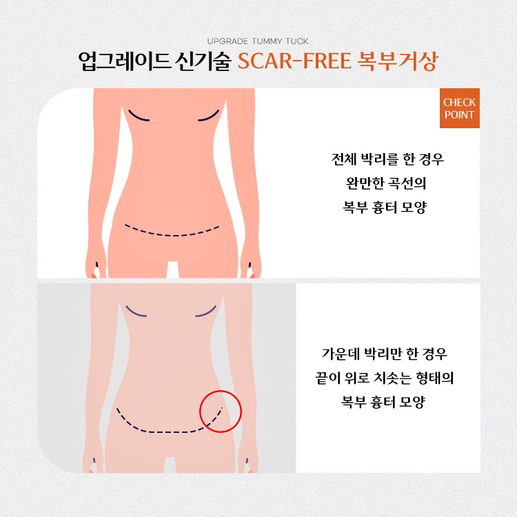 불과 몇년 전만 하더라도 복부성형이라고 하면 지방흡입만 알고 계셔서 복부거상술의 방법을 이해시켜 드리기 위해 많은 시간을 쏟아야 했었는데요. 하지만 지금은 스스로 수술 방법과 흉터 관리 방법에 대한 공부를 많이 하고 오시는 환자분들이 많아지셨다고 부쩍 느끼고 있습니다.  복부거상술은 배에 처진 피부가 있으면 이 피부를 없애고 지방도 흡입하면서 벌어져있는 복직근까지 교정을해서 복부 전체를 팽팽하게 만들고 홀쭉하게 만들어주는 수술이라고 할 수 있는데요. 하지만 지방을 없애면서 근육까지 교정하는 것은 밖에서 볼때는 잘보이지 않는 부분이기 때문에 아무래도 복부거상술은 준비하면서 가장 많이 물어보시는 건 흉터에 대한 부분입니다.  아무래도 지방흡입과 달리 복부거상술은 처진 피부를 잘라내야 하기 때문에 절개의 범위..
